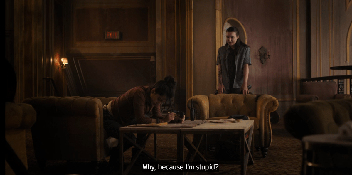 Again, and I seriously don’t know how many times I have to type this, I have lost the energy to do so but how is Dina so smart? She is able to figure out where Nora is IN the hospital. triangulate the position of all the patrols and map out a route. Then outta nowhere drops that she knows what amish people were in ‘03. And they connect that to the Seraphites.